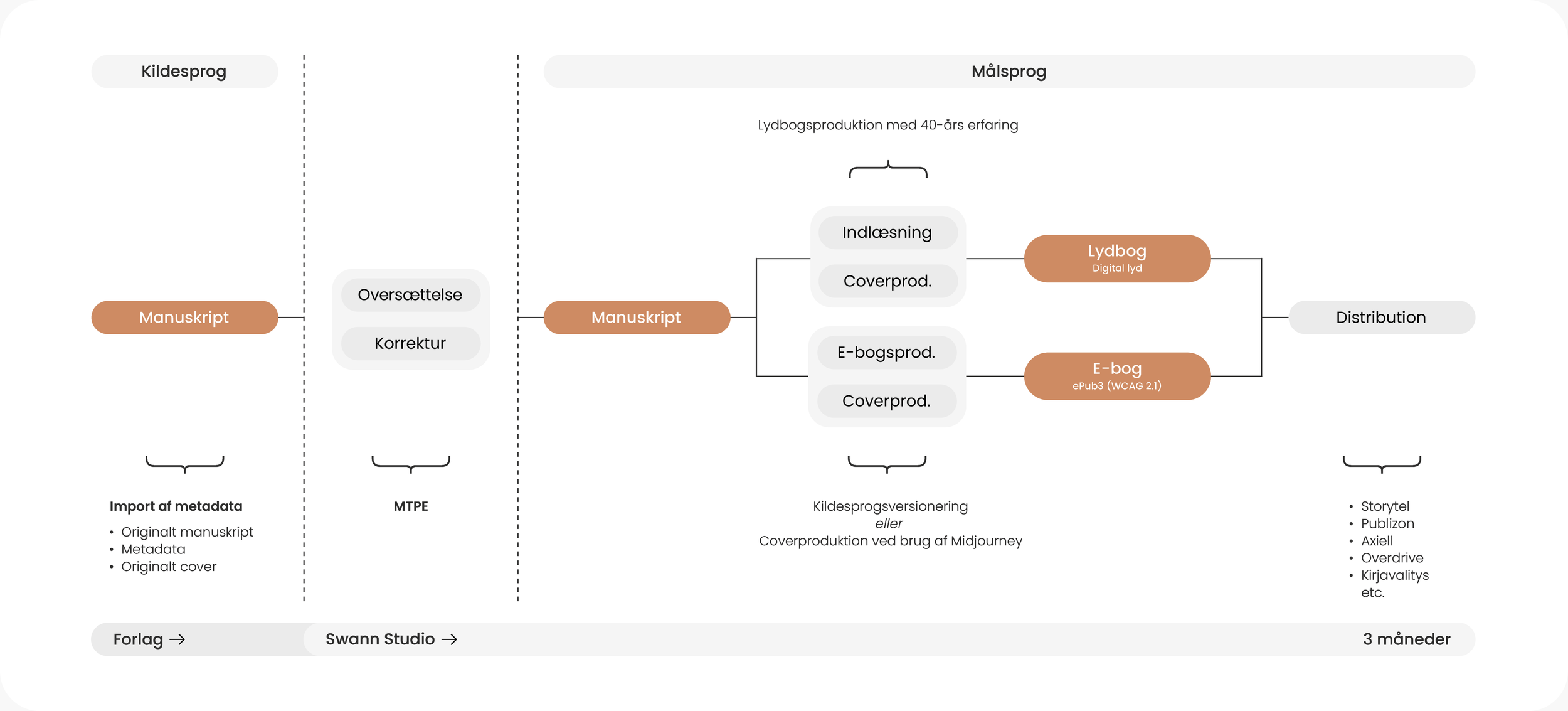 Vores workflow fra vi modtager dit manuskript og til din digitale bog er sendt ud til salg og streaming.